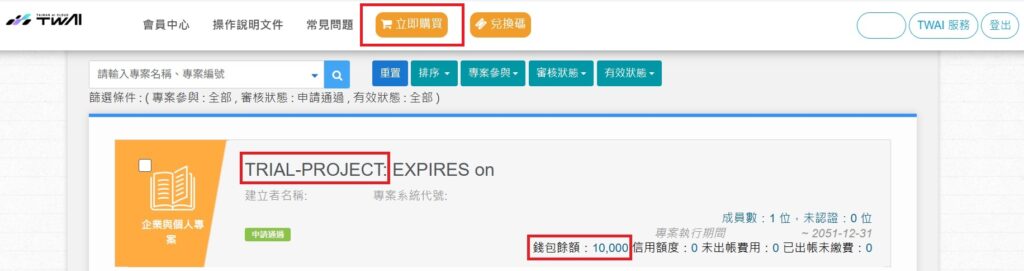 台智雲線上額度購買 Step 1. 註冊成為台智雲會員!(已註冊者請直接至下一步驟) 立即註冊 Step 2. 登入會員中心後,可在會員中心頁面點選「立即購買」,進入會員中心線上刷卡。 登入會員中心 Step 3. 至台智雲服務使用者入口點選專案,立即啟動 AIHPC 高速運算即服務和安全可靠的 IaaS 服務。 登入使用者入口 更多付款模式,歡迎與我們聯繫 聯絡我們